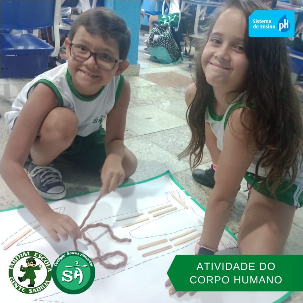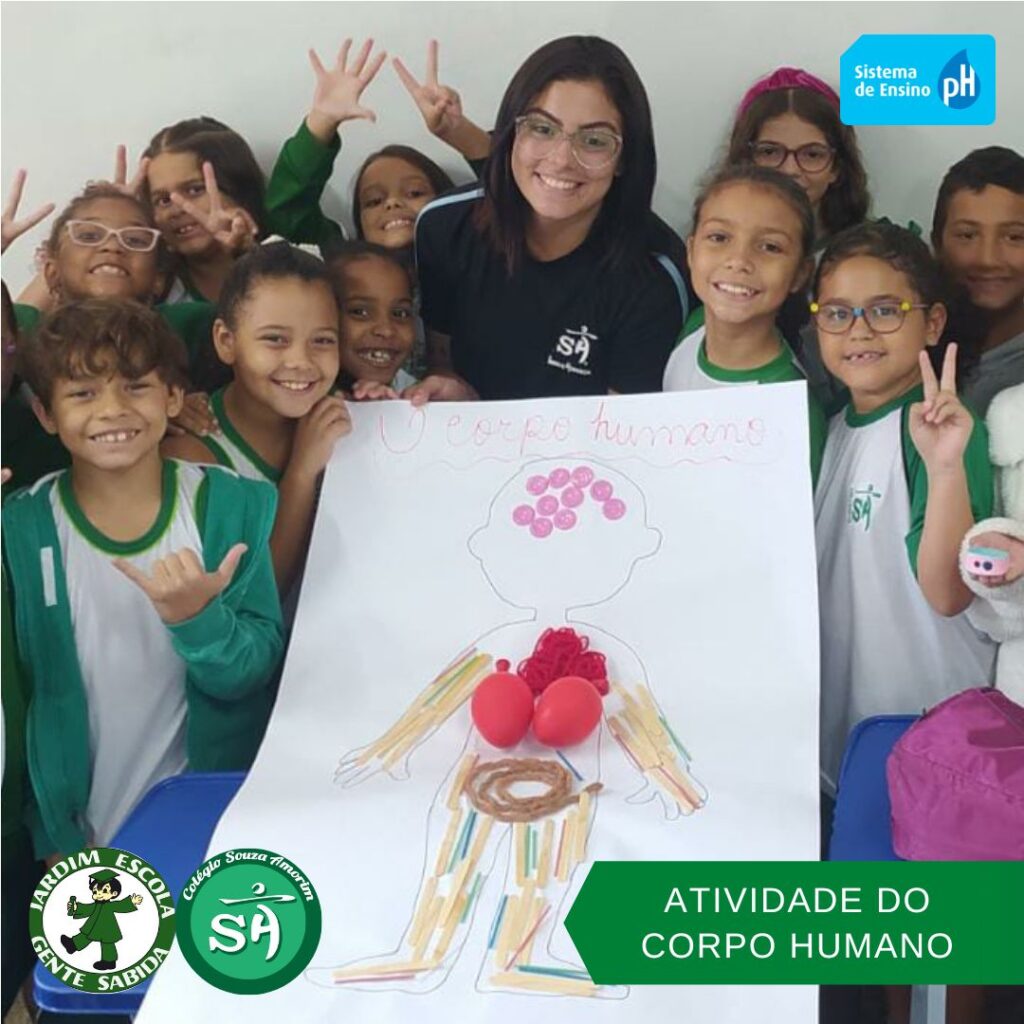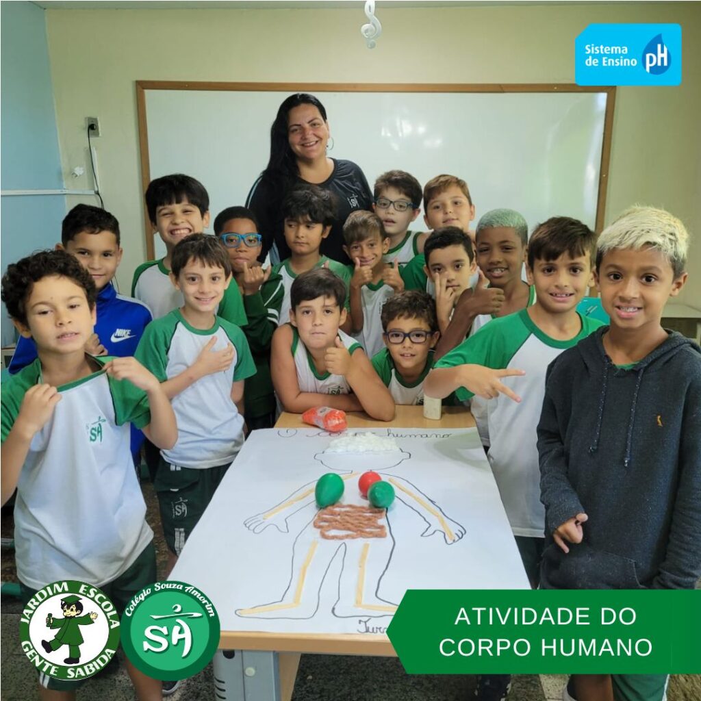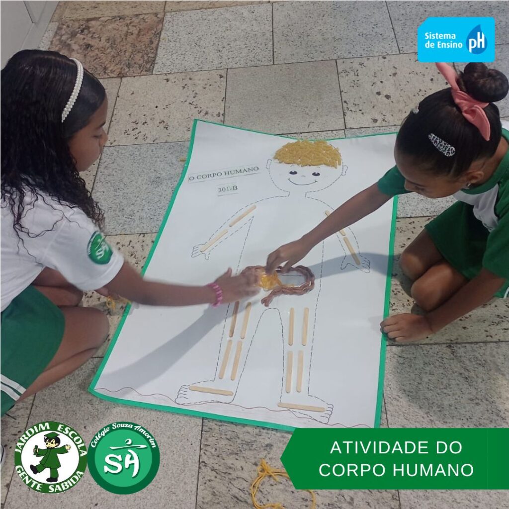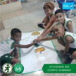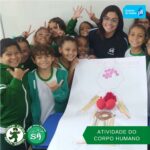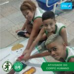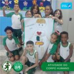 As turminhas do terceiro ano, orientadas pelas professoras Débora, Isabelle e Luciana, produziram um corpo humano utilizando sucata. Essa atividade permitiu que os alunos aprendessem de forma divertida, que um corpo é formado por vários órgãos e sistemas que funcionam de modo a realizar as mais variadas funções.