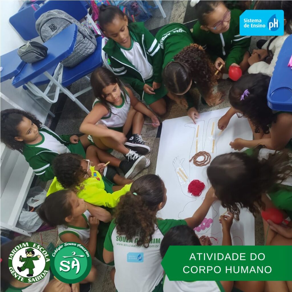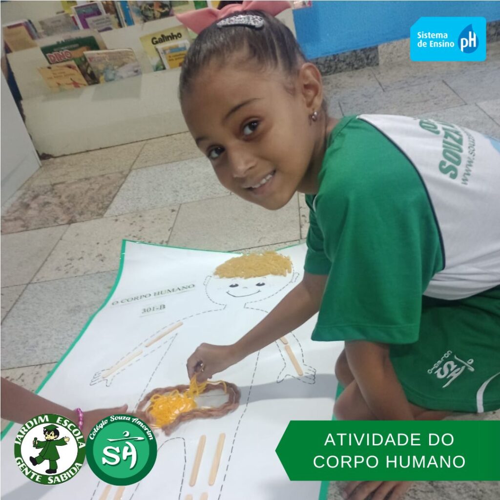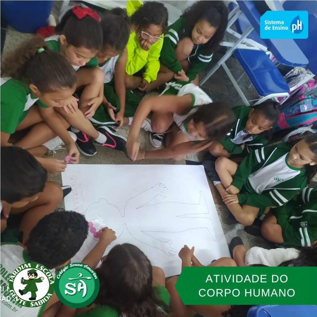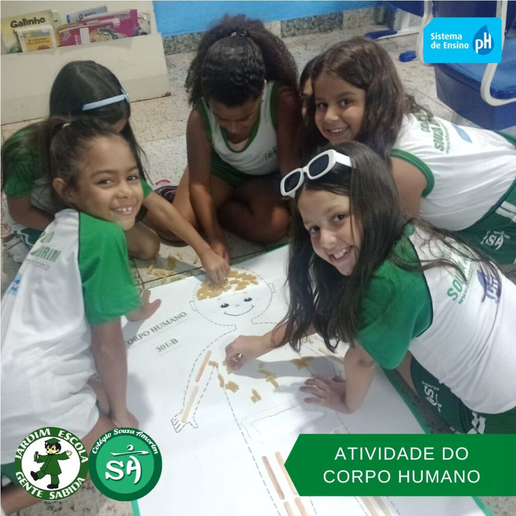 As turminhas do terceiro ano, orientadas pelas professoras Débora, Isabelle e Luciana, produziram um corpo humano utilizando sucata. Essa atividade permitiu que os alunos aprendessem de forma divertida, que um corpo é formado por vários órgãos e sistemas que funcionam de modo a realizar as mais variadas funções.